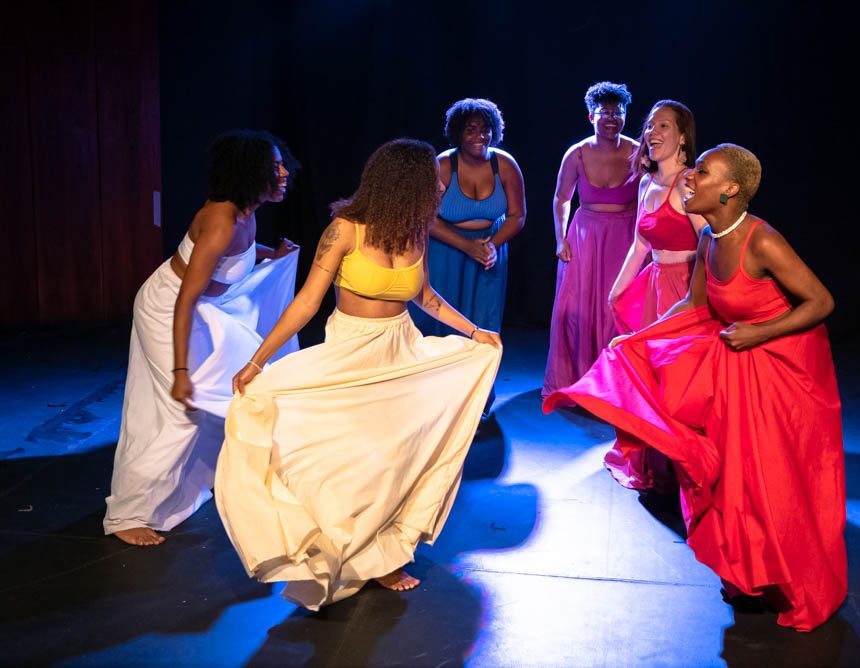 “O Teatro das Oprimidas é resultado da necessidade de desenvolver produções teatrais, nas quais as mulheres não sejam culpabilizadas pelas violências machistas que enfrentam, e de ampliar a participação de artistas-ativistas como facilitadoras desses processos de produção e do diálogo com o público nas sessões de Teatro Fórum, uma das técnicas mais praticadas do Teatro do Oprimido, método criado por Augusto Boal. Por um lado, o Teatro das Oprimidas aprofunda a perspectiva subjetiva do problema para explicitar a complexidade das personagens e, por outro lado, prioriza a inclusão da estrutura social na encenação, a fim de revelar os mecanismos de opressão que sustentam o sistema patriarcal.”